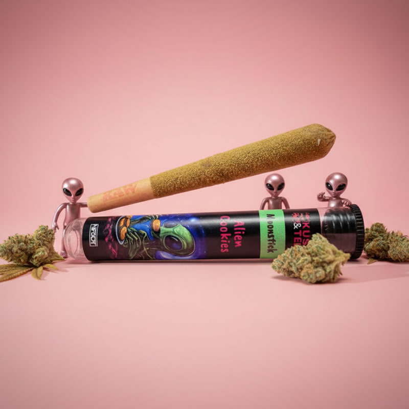 An indoor moonstick is a high-potency joint made with indoor-grown cannabis, often infused with concentrates like hash oil and rolled in kief for an extra strong, flavorful, and smooth smoke.